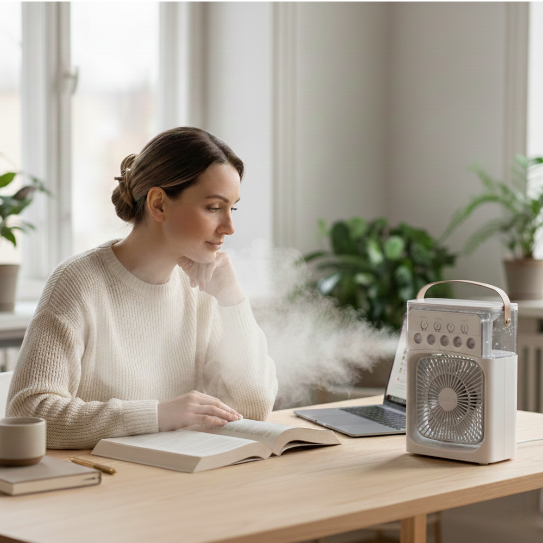 Trabalhar suando ou tentar dormir no calor é impossível! O ventilador comum só espalha vento quente e o ar condicionado gasta uma fortuna de energia. Você precisa de algo prático e econômico.
